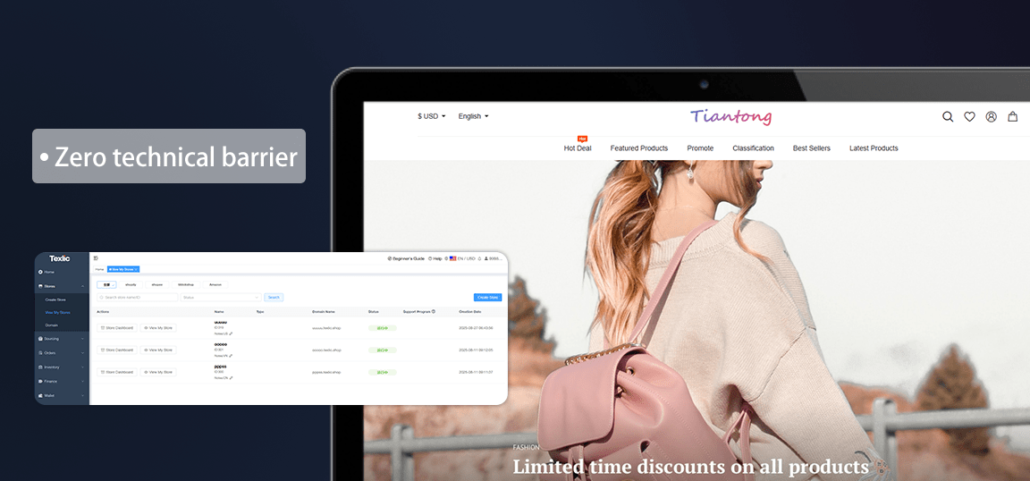 Texlic is a zero-cost e-commerce SaaS platform that makes online selling effortless. From free store creation and 200M+ product sourcing to AI tools and automated fulfillment, Texlic helps beginners and experienced sellers launch, grow, and succeed—without barriers.