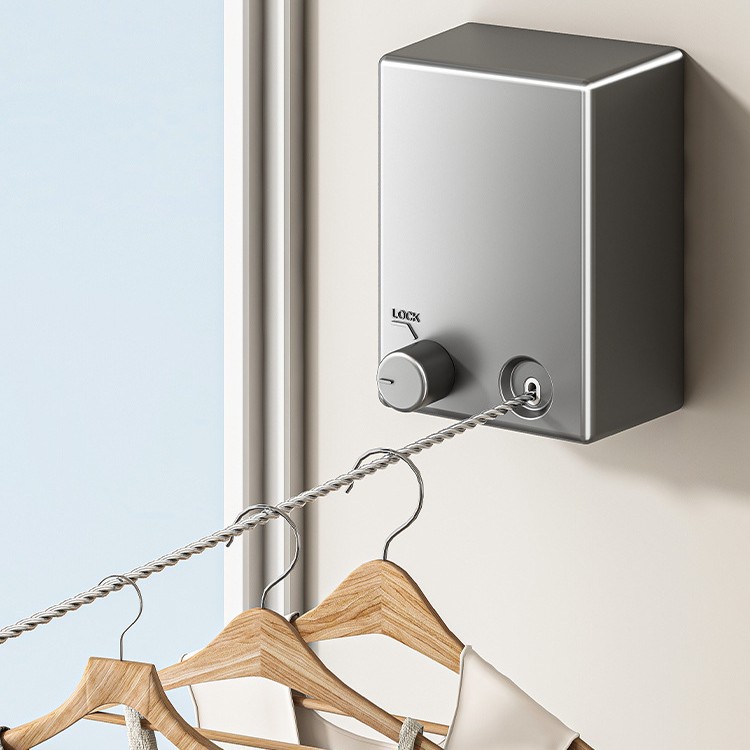 Indoor Clothes Drying Rack, No-Drill Retractable Clothesline, Hotel Balcony Clothes Drying Wire Rope for Guesthouses and Hotels