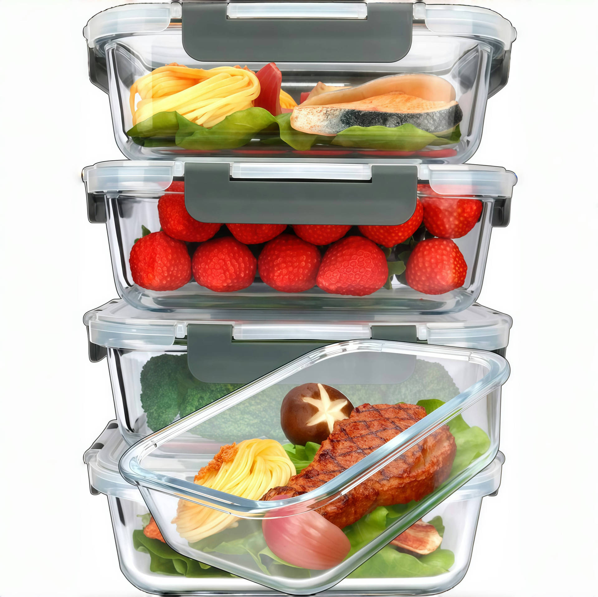 Amazon Glass Lunch Box Microwave Oven Glass Bowl Cross-Border Fresh-Keeping Bowl Black Lid Glass Lunch Box Lunch Box